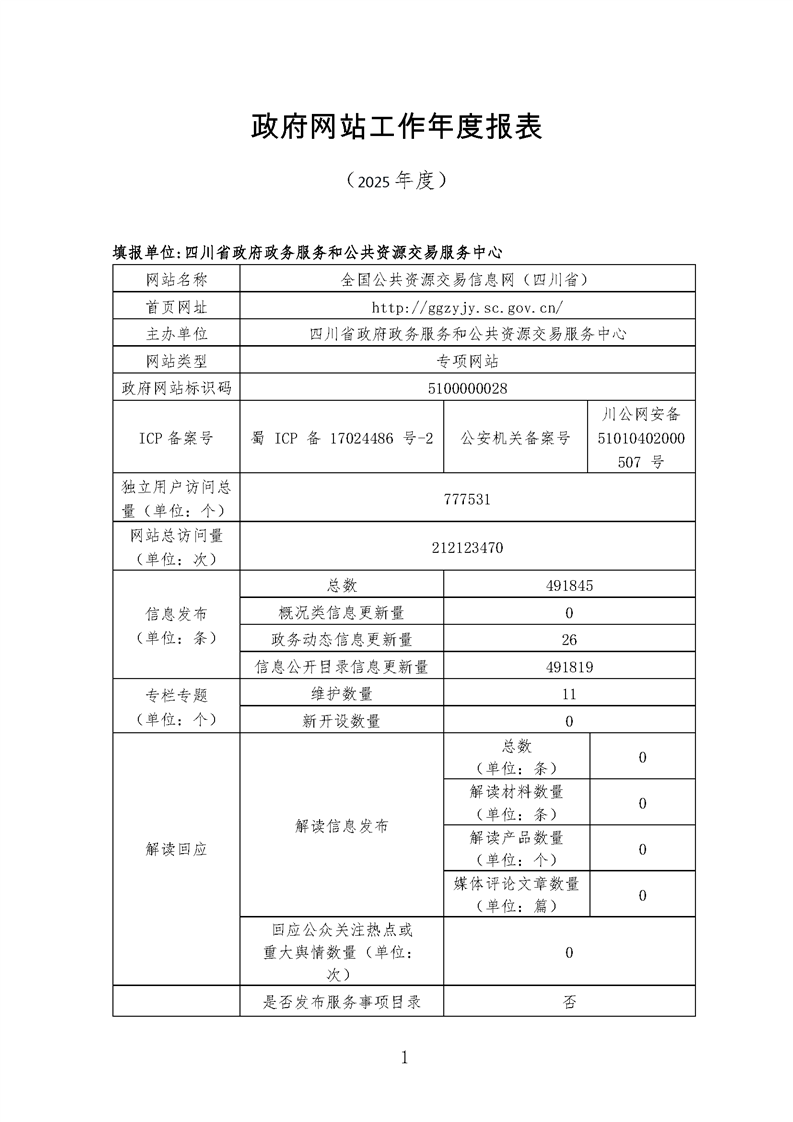 四川省政务服务和公共资源交易服务中心政府网站工作年度报表(2025年度)